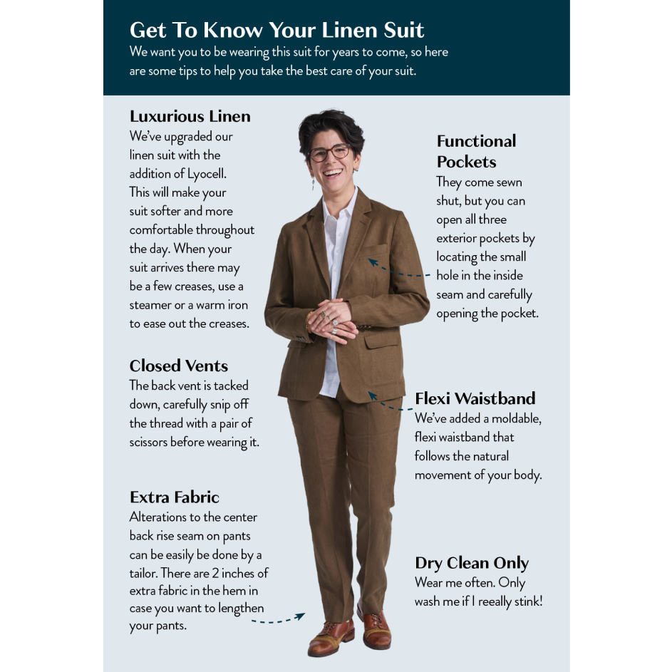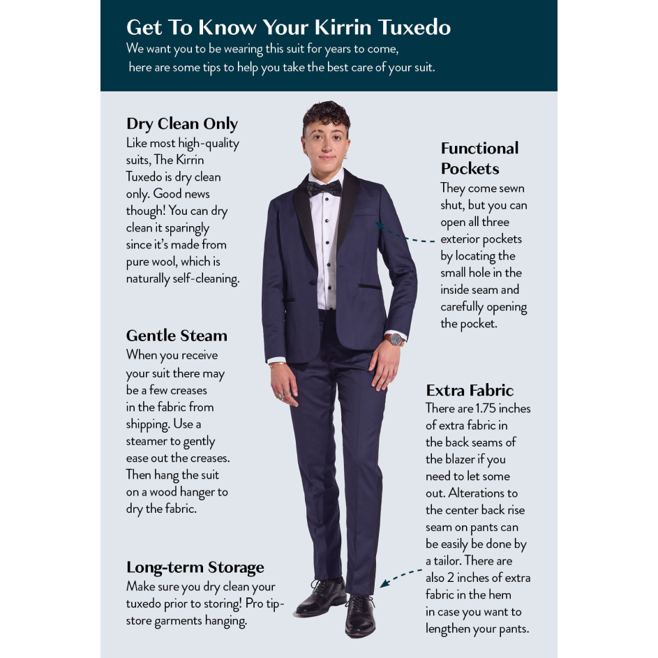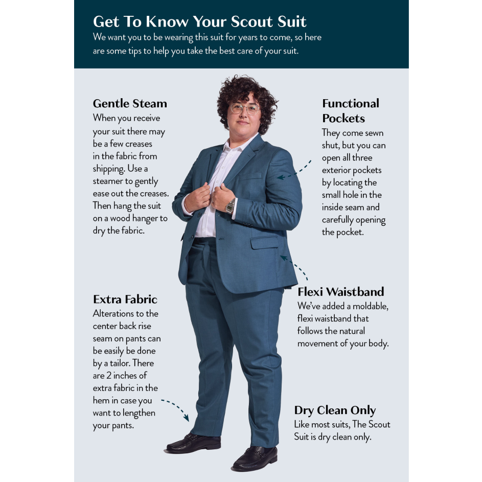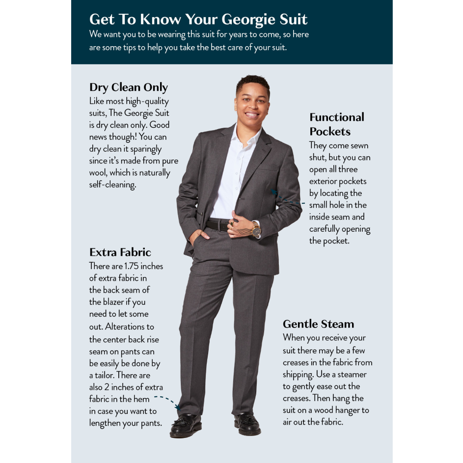 For suits and blazers, dry cleaning only, no exceptions. Your suit will thank you.